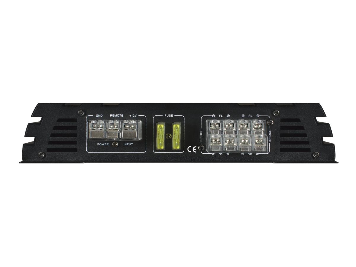 Four-channel car amplifier. 4x70 watts RMS power at 4 ohms. Bridgeable. 4x70 watts RMS power at 4 ohms.