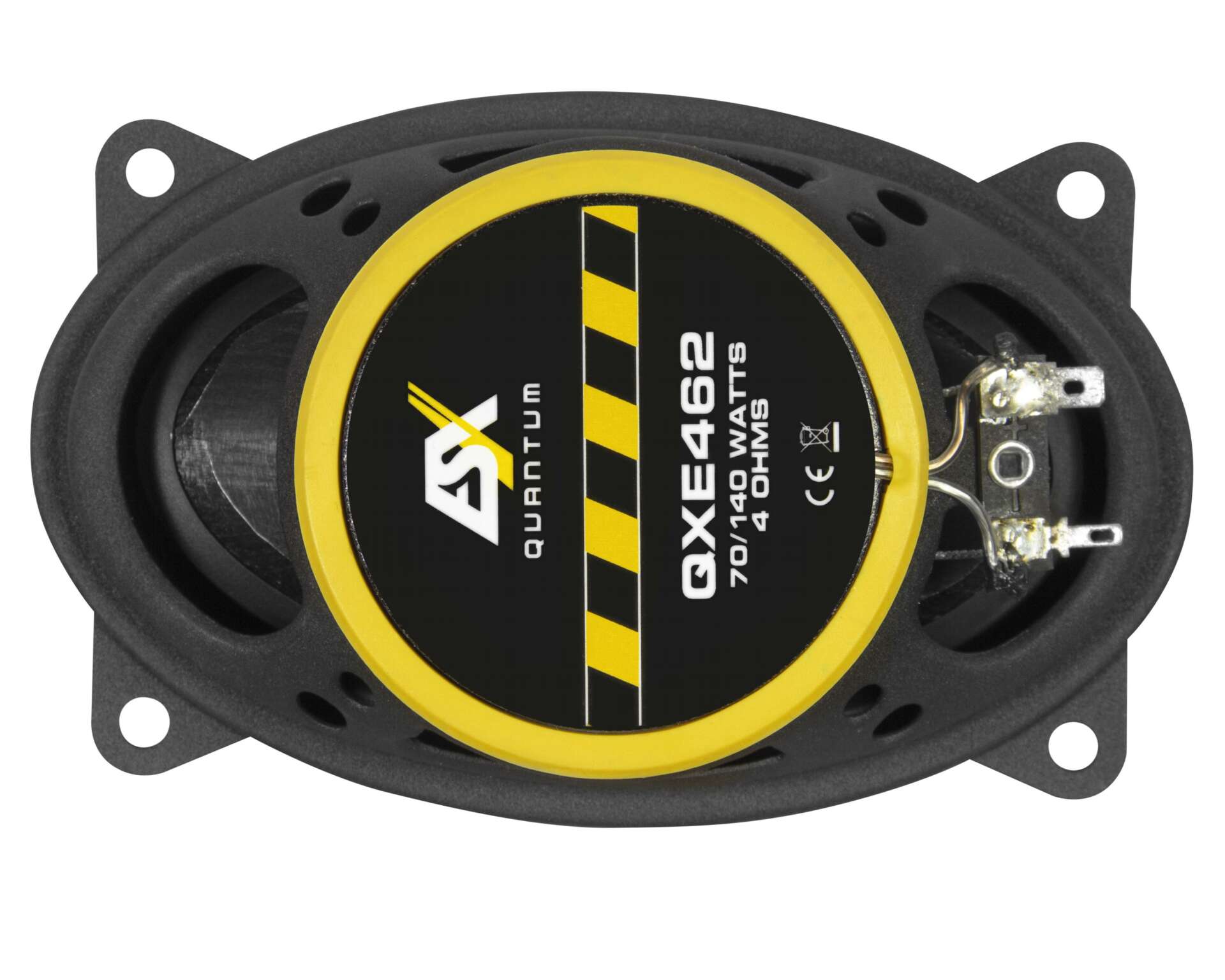 The ESX QXE Car-Fit series are high-performance coaxial speakers designed for cars where standard speaker sizes don't fit the factory mounting locations. The 4x6-inch models are the perfect solution for those who want a compact size with excellent sound quality.