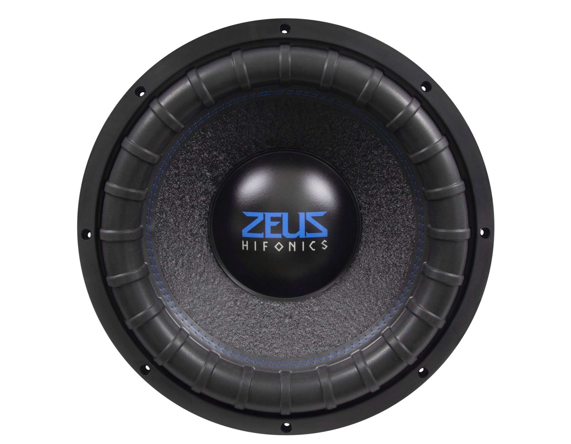 ZEUS ZRX series subwoofer with a 15-inch diameter (380 mm). RMS power: 1500 Watts. Maximum power: 3000 Watts. Dual voice coil subwoofer. Impedance: 2×2 Ohms.