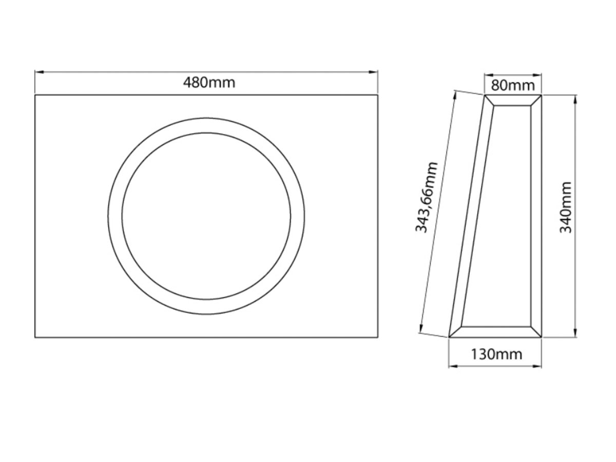Closed bass box, 25 cm subwoofer, 300 W RMS power, special design ensuring extremely small box depth – 13 cm at the bottom and 8 cm at the top.