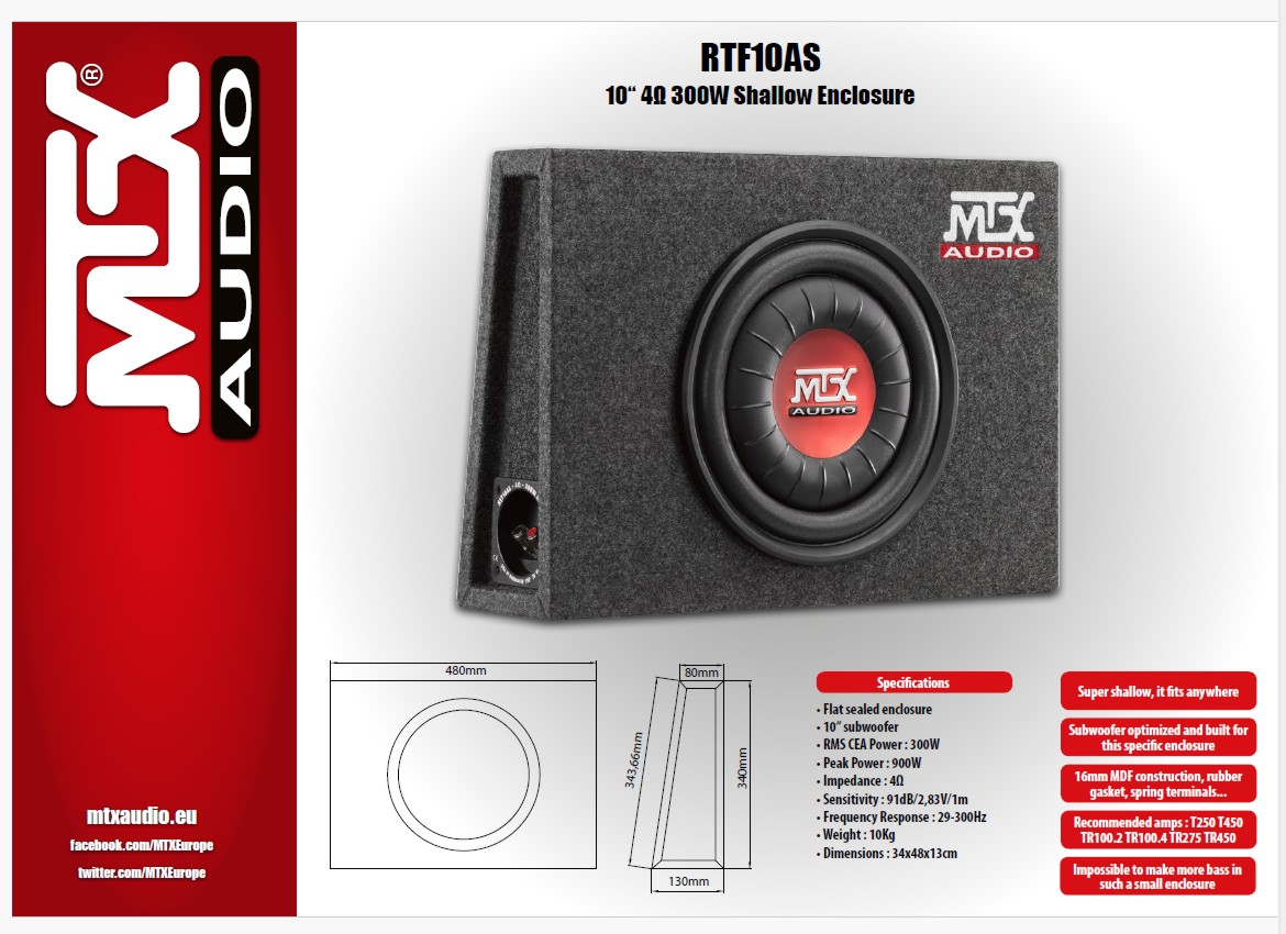 The MTX RTF10AS is an ultra-flat subwoofer in a sealed enclosure 25 cm (10") 4Ω woofer .