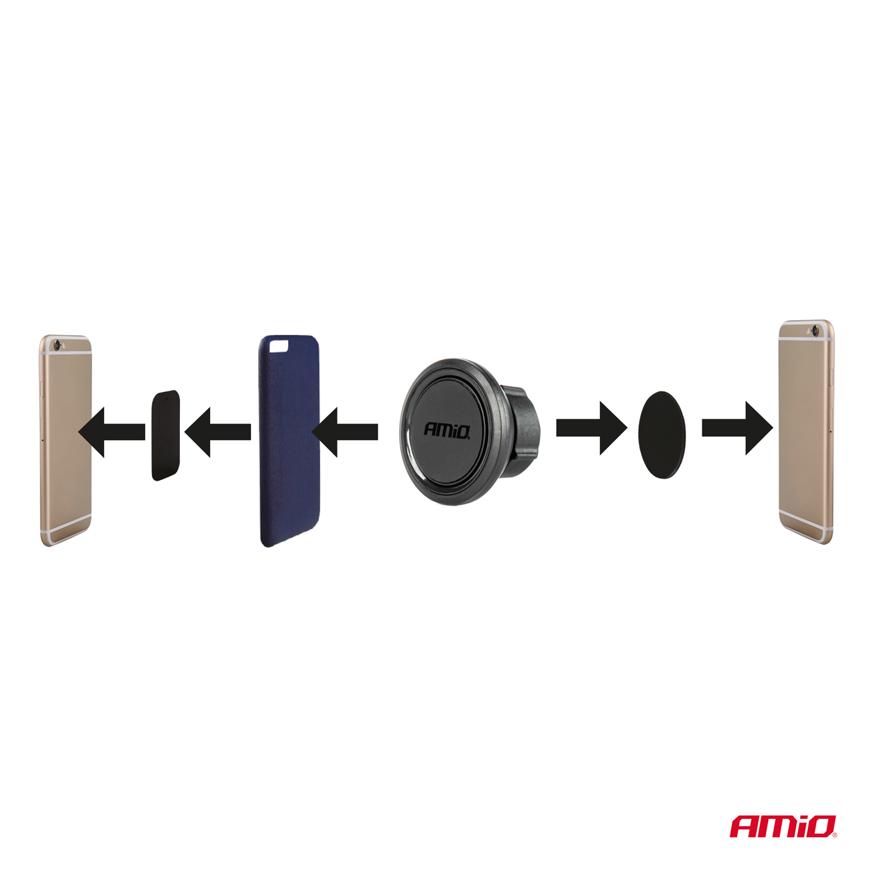Magnetiline telefonihoidik autosse esiklaasile iminapaga, reguleeritav 360° AMIO-04145