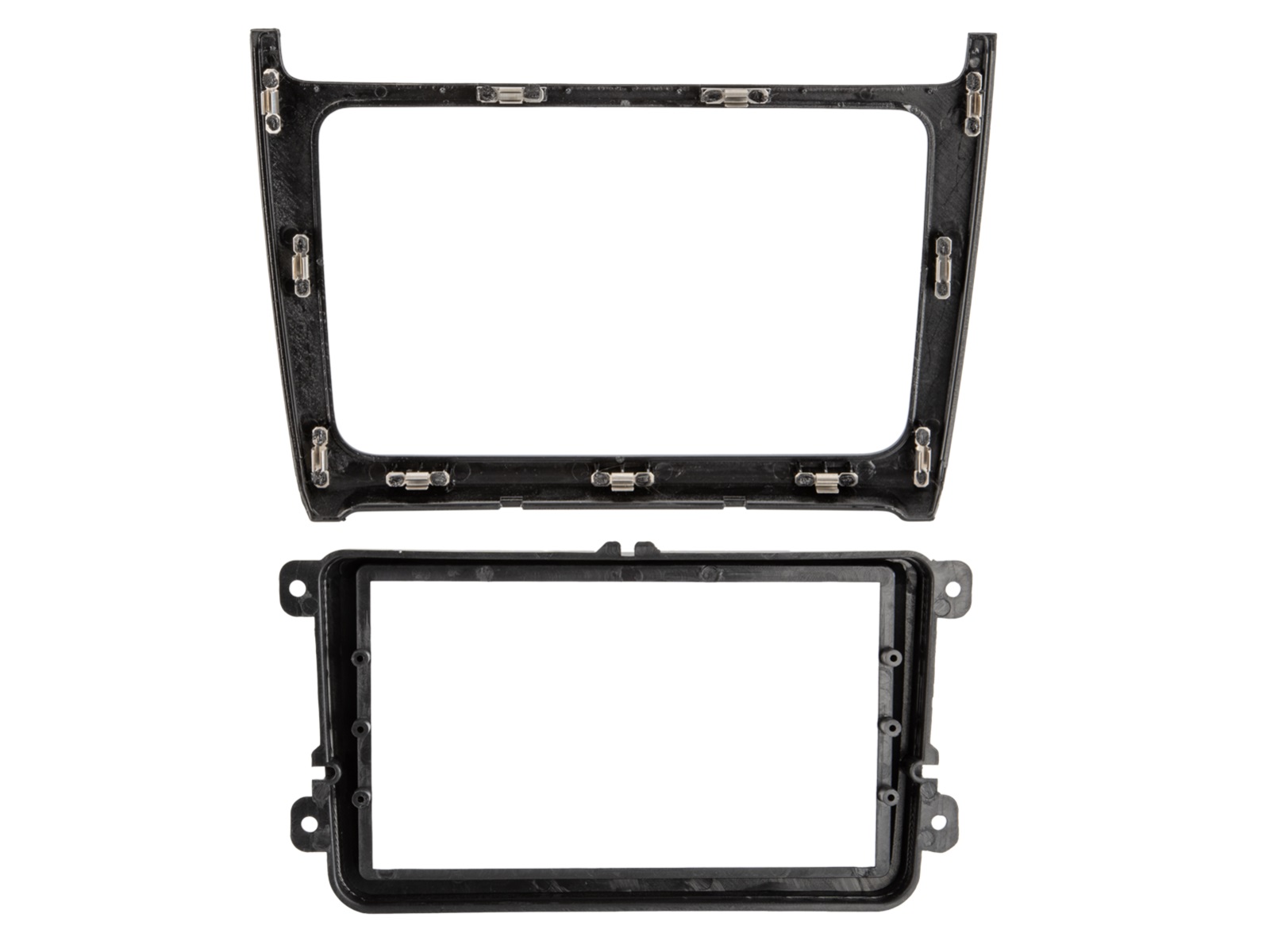 Cornice per autoradio 2-DIN progettata per VW Polo V (6R) dal 2014 al 2017. Consente l'installazione professionale ed estetica di DIN o 2-DIN al posto del sistema multimediale di fabbrica, mantenendo l'aspetto e lo stile del cruscotto.