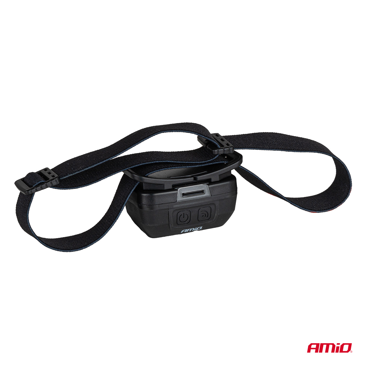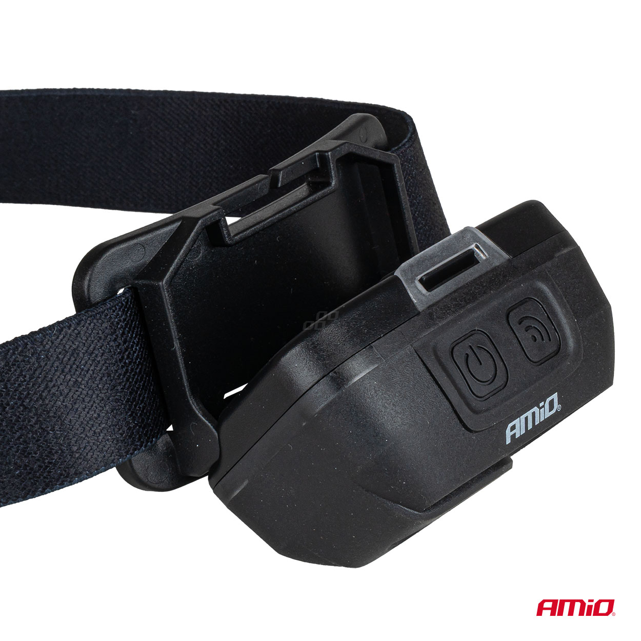 Oppladbar hodelykt med bevegelsessensor XPG+COB 1800mAh (BATT) AMIO-04667