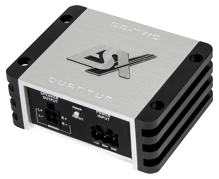 Model QS-TWO jest stabilny przy obciążeniu 2 Ω na kanał, oferując moc 2 × 95 W RMS. W trybie mostkowania (Bridge Mode) przy impedancji 4 Ω wzmacniacz może zasilić subwoofer o mocy do 200 W RMS – idealne rozwiązanie do rozbudowy fabrycznych systemów audio.
