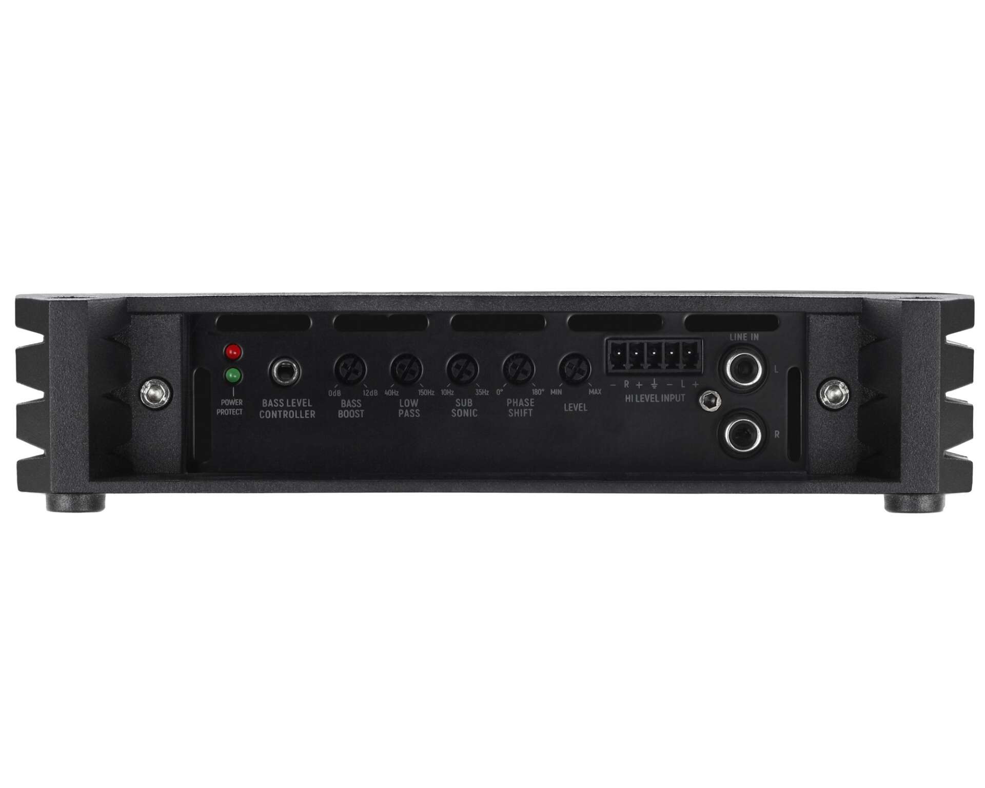 Wzmacniacz dwukanałowy z serii MERCURY. Moc 2×150 Wat RMS przy 4 Ohm, 1×500 Wat RMS przy 4 Ohm w mostku. Sterownik basu w komplecie. Wejście sygnału Hi-Level.