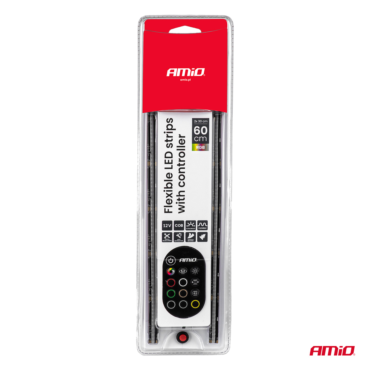 Paski LED do samochodu wielobarwne multi kolor RGB z pilotem 2x30cm 12V AMIO-04579