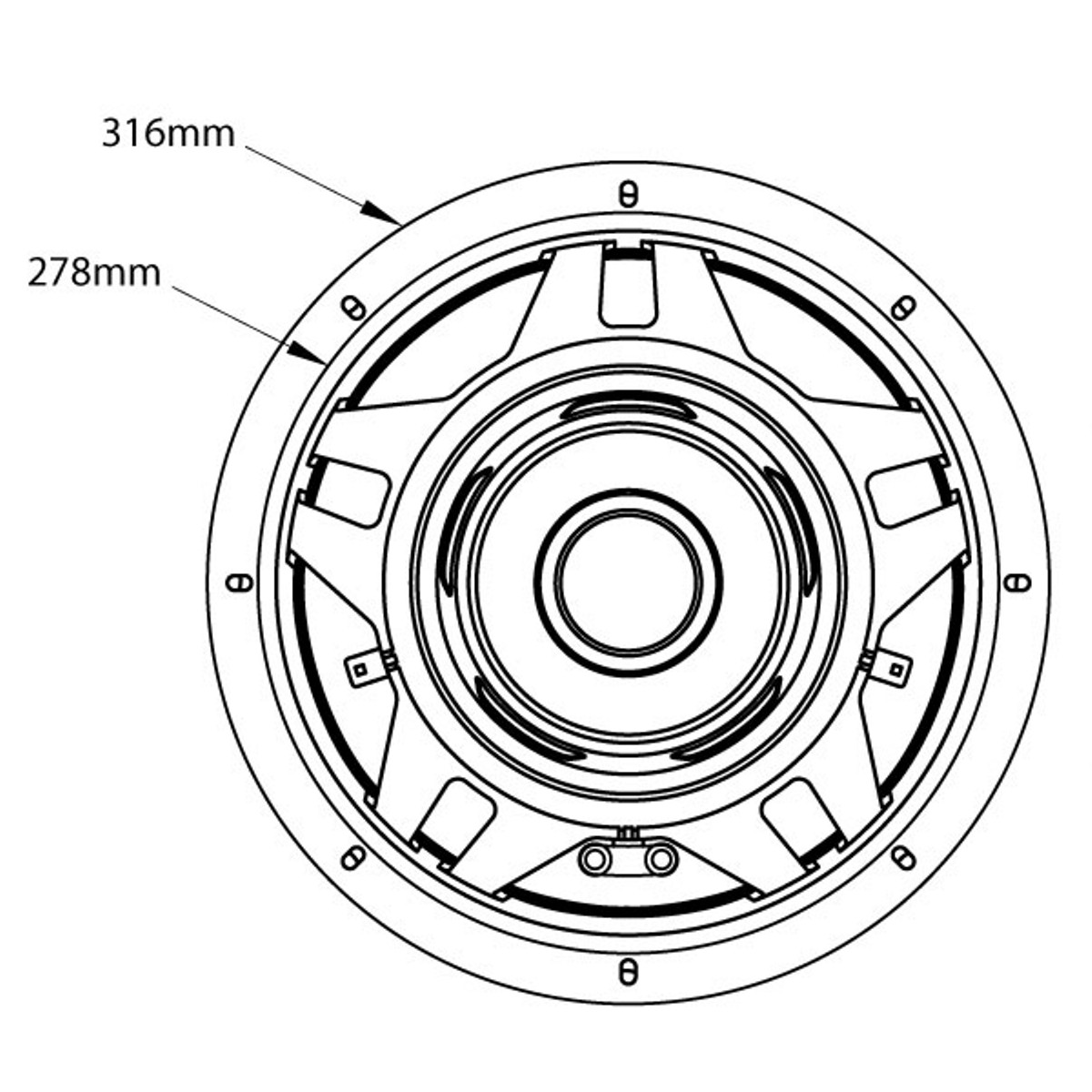 Auto subwoofer s priemerom 30 cm/12 palcov – 1×4 Ohm, RMS výkon 250 Wattov, maximálny výkon 700 Wattov, SPL: 92 dB